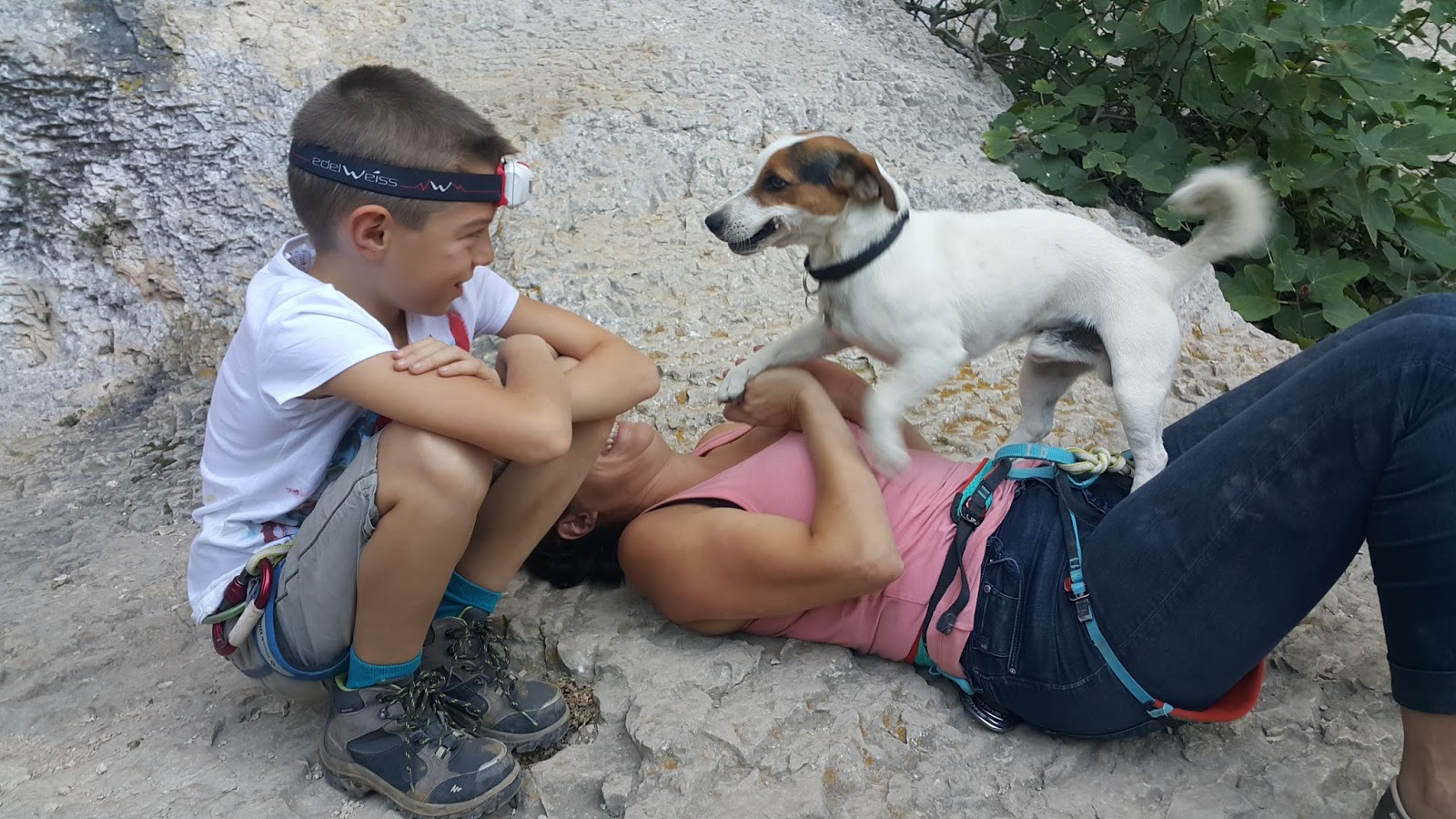 adventure for Hugo: We crawled in and out of limestone tunnels. We abseiled